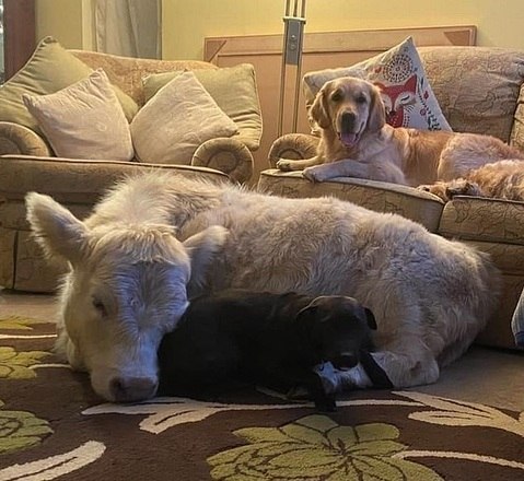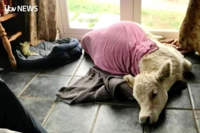 Segundo Molly, o simpático bezerro nasceu doente após uma cesariana complicada e foi rejeitada pela mãe