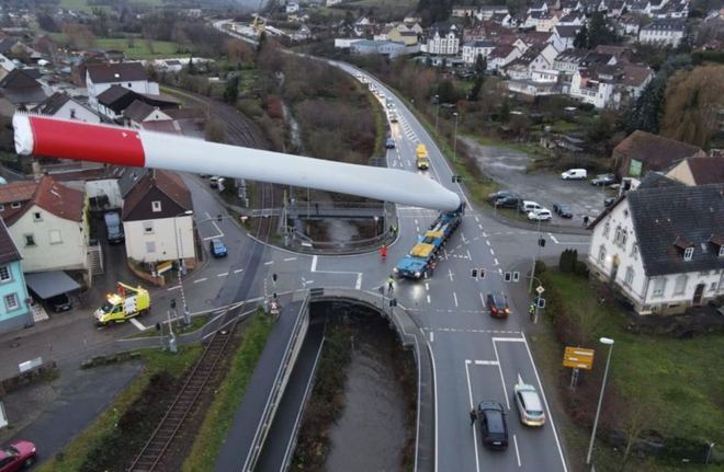 A postagem registra o processo assustador de transportar "um conjunto de pás de hélice de 67 m, em uma rota desafiadora". Os veículos de transporte passaram por estradas remotas e pequenas aldeias de Luxemburgo. As imagens geraram incredulidade na rede social e viralizaram posteriormente no Facebook
