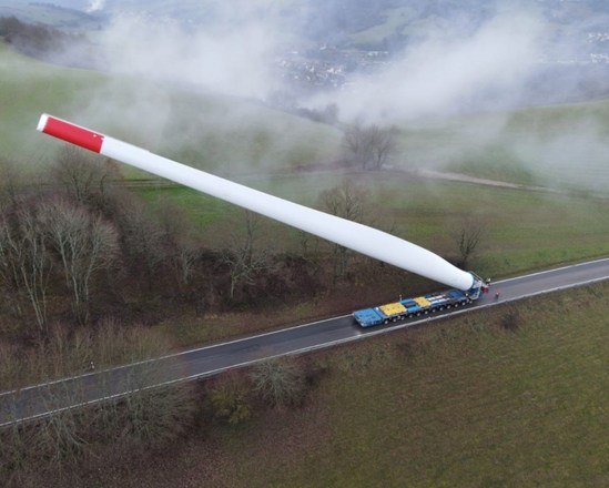 Transportar algo tão grande e pesado (25 toneladas) exige um planejamento cuidadoso para evitar estradas e retirar linhas de transmissão em alguns locais. Ao contrário do restante da hélice, as pás não podem ser desmontadas e precisam ser transportadas com a peça inteira. Não é possível levá-la na horizontal, por causa das curvas, então é preciso transportar de forma inclinada, num ângulo entre 20 e 45 graus