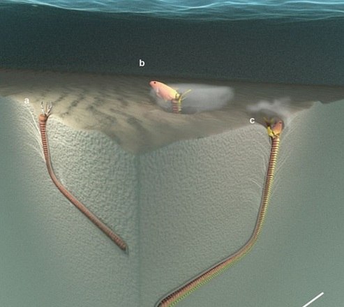 Pelo tamanho das tocas, os cientistas acreditam que o verme — que deve ter vivido em torno de 20 milhões de anos atrás — tinha cerca de 2 m e se enterrava de forma muito similar aos bobbits