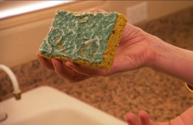 Outro exemplo é a esponja de lavar a louça, que ela usa até se desfazer completamente