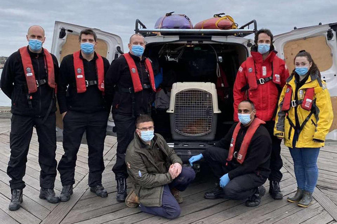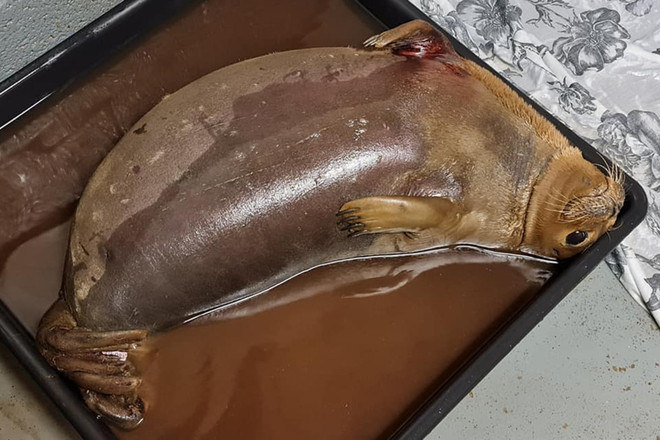 Uma equipe de veterinários foi ao local para salvar o mamífero marinho, que tinha uma nadadeira fraturado e um ferimento infecionado