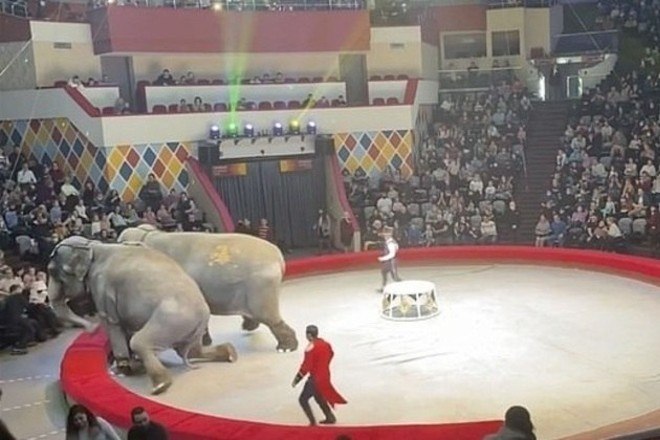 Um duelo de elefantes apresentado em um circo russo terminou em caos completo. Diversos espectadores precisaram correr enquanto as feras brigavam e quase atropelaram o público