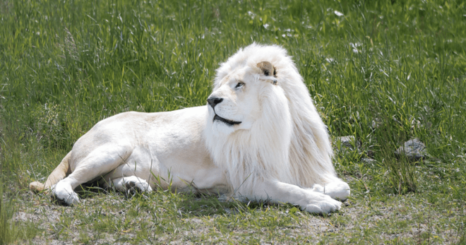 Esses leões não são inteiramente brancos, mas sim exibem um tom marrom bem claro