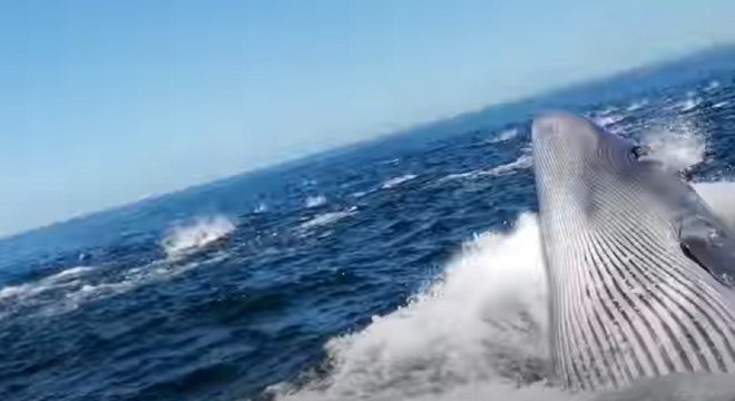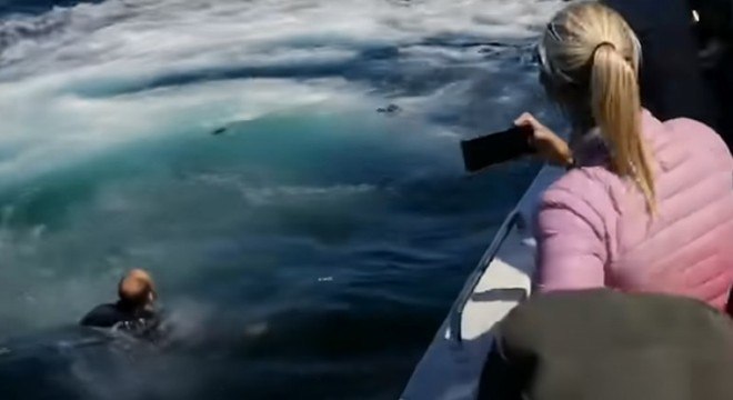 Uma enorme baleia colidiu com um barco que navegava pela Baía de Algoa, na África do Sul, e quase engoliu acidentalmente um homem lançado ao mar