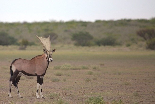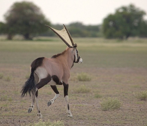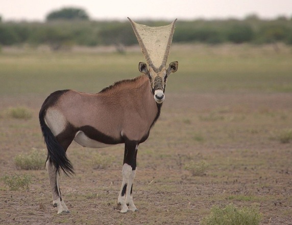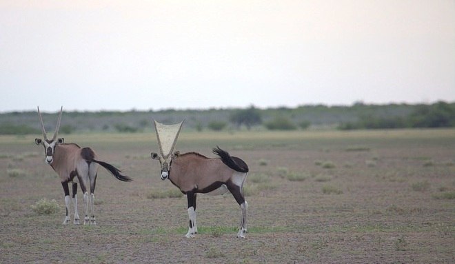 Turistas em um safári em Botsuana, na África Central, ficaram preocupados com o que parecia ser uma substância tóxica nos chifres de um oryx (parente dos antílopes). Mas uma análise mais próximo mostrou algo mais natural, embora ainda estranho