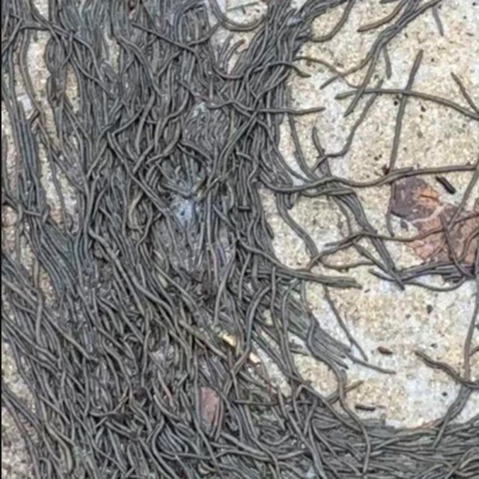 As imagens, que parecem saídas de um pesadelo da natureza, foram intituladas por ela como "Tornado de vermes?", perguntando se alguém já vira algo parecido.