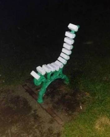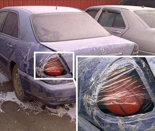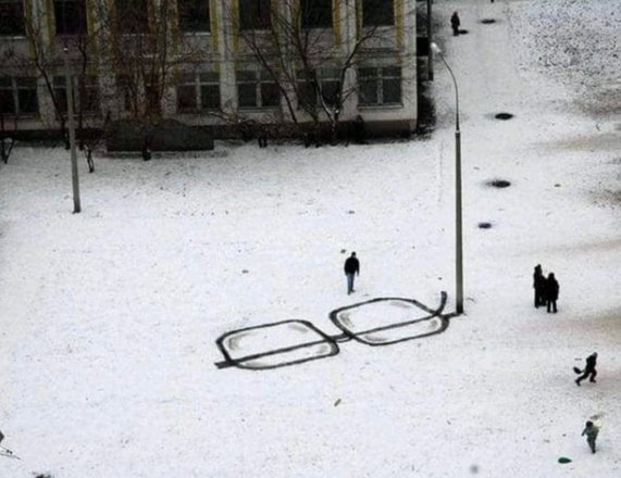 Arte de rua ou um óculos desenhado na neve com uma das hastes representada por um poste de luz?